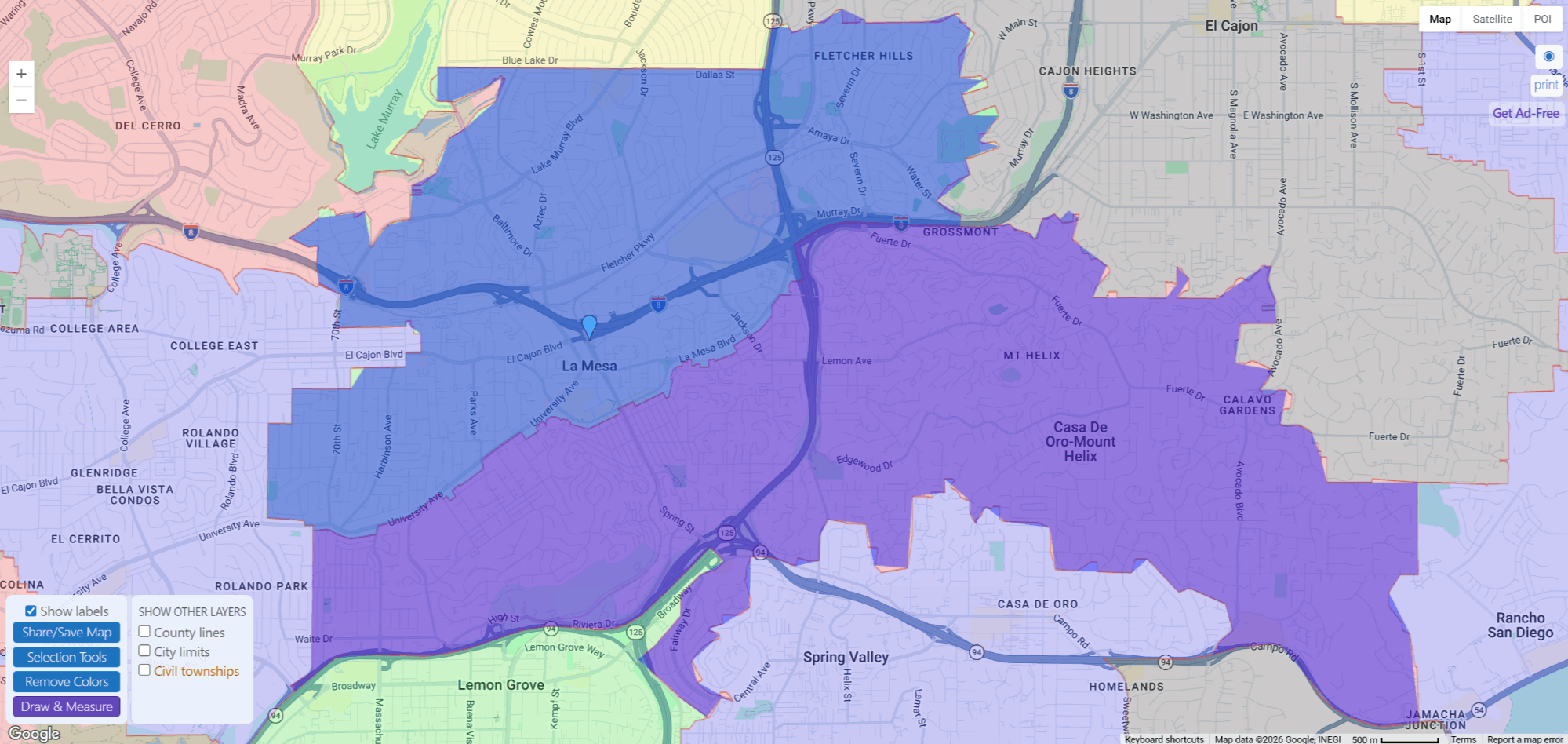 Both are in the La Mesa-Spring Valley School District for elementary and the Grossmont Union High School District for high school. Both have easy I-8 access. And both are roughly 9-10 miles from downtown San Diego.
